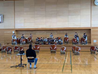 良鳴先生との最後の時間。今までの練習の成果を見ていただきました。心温まる励ましの声をいただき、卒業式の日に行われる巣立ちの式に向けてさらに演奏を高めていきます。