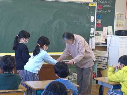 今年度最後の読み聞かせのお話は、香山美子さんの「どうぞのいす」でした。1年間、読み聞かせで楽しい時間を過ごさせていただきました。最後に感謝のお手紙を渡しました。ありがとうございました。