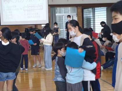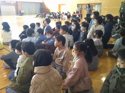卒業を祝う集会で、今までお世話になった6年生さんへありがとうの気持ちをこめて書いた全校のメッセージカードを渡しました。6年生さんに喜んでもらった嬉しさと、もうすぐお別れする寂しさが混じった気持ちを味わった子供たちです。