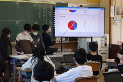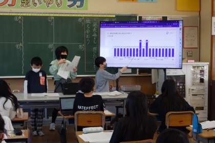 国語科の学習の様子です。アンケート調査をもとに分かったことを、発表しました。