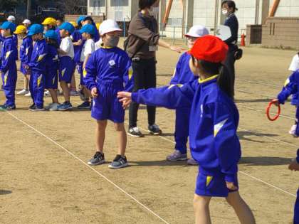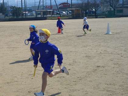 気持ちのいい天気のもと、グランドに出てリレーをしました。団で作戦をたてて、みんな力一杯走りました。