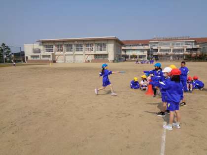今日の体育では、リレーを行いました。いつもよりレベルアップして、今日は、グラウンドの周りを使ってのリレーです。「バトンをパスする時にどこを向けば良いのか」「外側と内側だとどちを走るほうが良いのか」など、たくさん考えていました。次にリレーをするときは今回の反省を生かしたいという気持ちをもっていました。