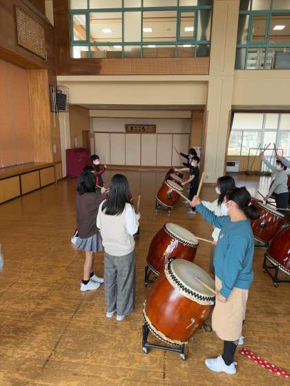 太鼓の引継ぎ活動もいよいよラストスパート。業間にたくさんの子供達が多目的教室に集まり、太鼓の練習をしています。