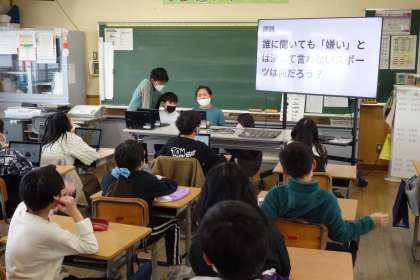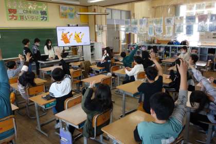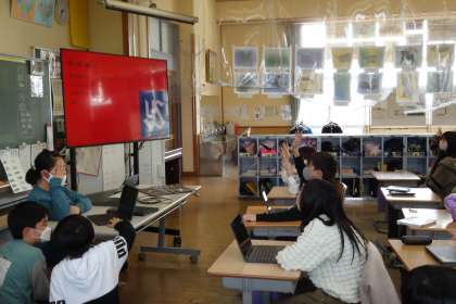 子供たちが企画した「クイズ大会」で楽しみました。それぞれの子供が趣味や自分の持ち味を生かし、様々なジャンルのクイズを作っていました。上手にスライドを扱えています。