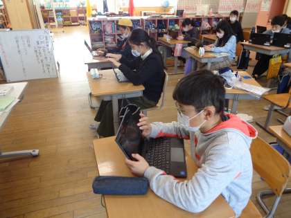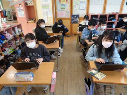 おすすめの本を紹介するポスターをクロームブックで作成しています。