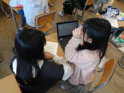 友達と見合ってアドバイスし合い、読みやすくなるように文章や配置等を工夫しました。