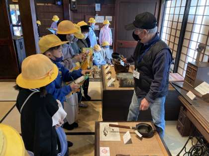 民族資料館では昔の道具を、民俗合掌館では昔の暮らしや家具を、売薬資料館では富山の売薬さんについて勉強しました。