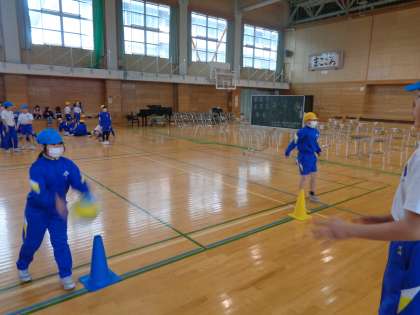 体育科では、引き続きポートボールを行っています。今日は、相手がとりやすい位置にパスを出すよう意識しました。優しくボールを投げる姿が多く見られました。