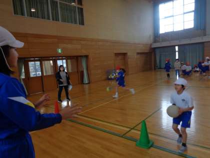 体育科では、引き続きポートボールを行っています。今日は、相手がとりやすい位置にパスを出すよう意識しました。優しくボールを投げる姿が多く見られました。