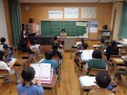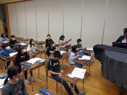 今日は、音楽専科の先生と最後の授業でした。今まで学習したこと楽曲を発表会の形式でおさらいしました。最後に先生から言葉をいただき、3年生の音楽を締めくくりました。