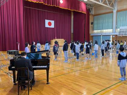 コルトン先生が校歌を演奏してくださいます。