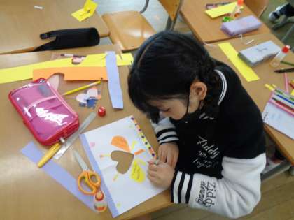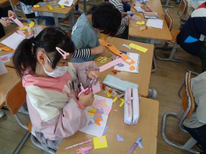 絵を描いたり紙を切ったりして絵本やマンション、怪獣などさまざまなものを作りました。