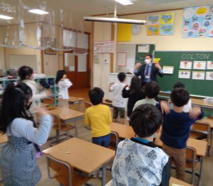 今日は、AKLTの先生の英語の授業がありました。廊下ですれ違った時に元気よく挨拶している大好きなALTの先生の授業に大喜び。いろいろな英語を教えてもらおうと積極的に質問している子供たちでした。