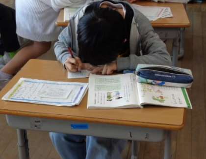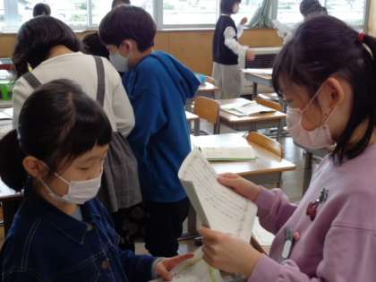 国語科「すてきなところをつたえよう」の学習で、友達に、すてきなところやがんばっていたところを手紙に書いて伝え合いました。伝えてもらった返事をカードに書いて渡しました。2年間の思いがつまった手紙を受け取って、みんなとても嬉しそうでした。