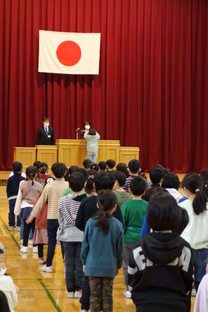 修了証を受け取り、1年間を締めくくりました。明日からは、春休み。校長先生のお話の中にもあった「一生懸命に取り組む」「大好きなことを見付ける」という大事な2つの宿題に取り組んでくださいね。