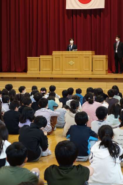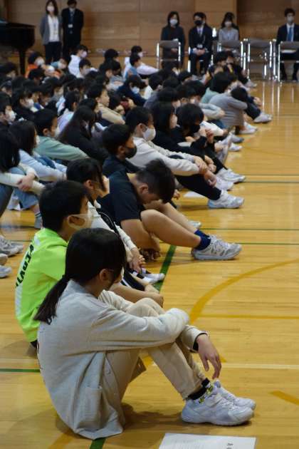 宮野小学校を離任されることが決まった先生方とのお別れの式を行いました。5年生の代表児童が、感謝の気持ちを丁寧に伝えることができました。
