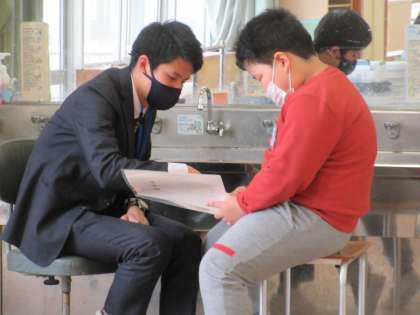 各教室で、担任の先生から通知表(修了証)をもらいました。
