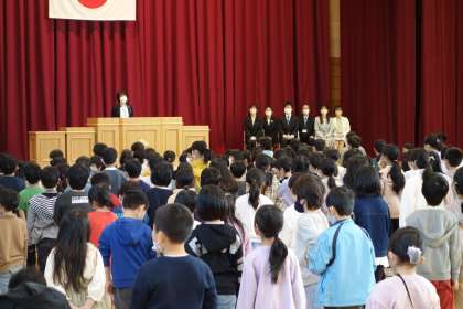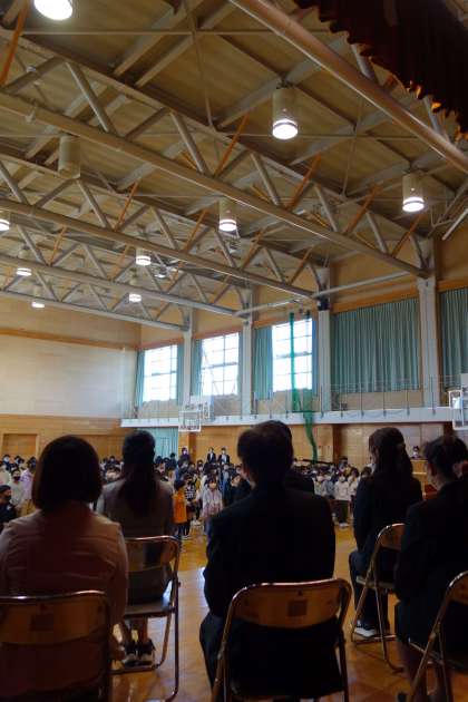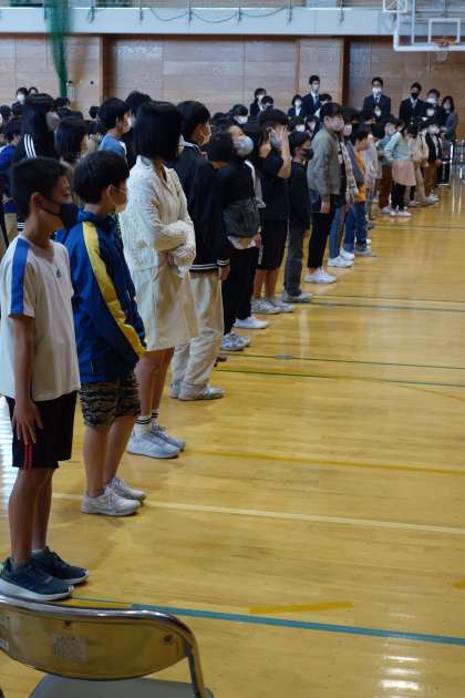 異動される先生や職員の方とのお別れの式を行いました。