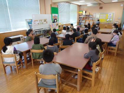 図書室の正しい使い方を確認し、司書の先生に読み聞かせをしていただきました。