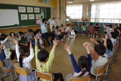 クラスのみんなでゲームをして、なかよしレベルをアップしました。きちんと拍手をしたり、友達の名前を呼んだりして、仲良く活動に取り組むことができました。