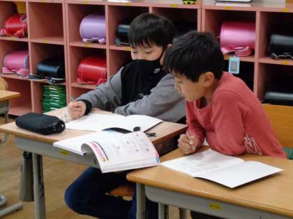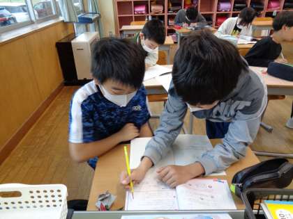 学力調査に向けて、5年生までに学習した内容を振り返りました。友達と関わり合いながら、力を伸ばしています。