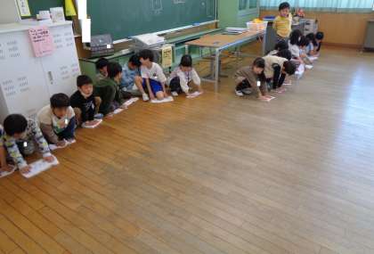 掃除の時間は、みんなで教室掃除をしています。一列に並んで一斉に雑巾をかけ、机もみんなで協力して運んでいます。掃除が終わった後も忘れず雑巾を雑巾干しに綺麗にかけている姿が見られるなど毎日成長してきている1年生です。