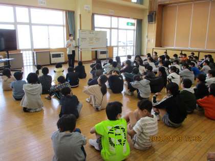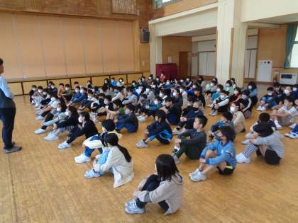高学年で集まり集会を行いました。先生の話をそれぞれが考えながら聴き、宮野小学校の顔となる自覚を改めてもつことができました。