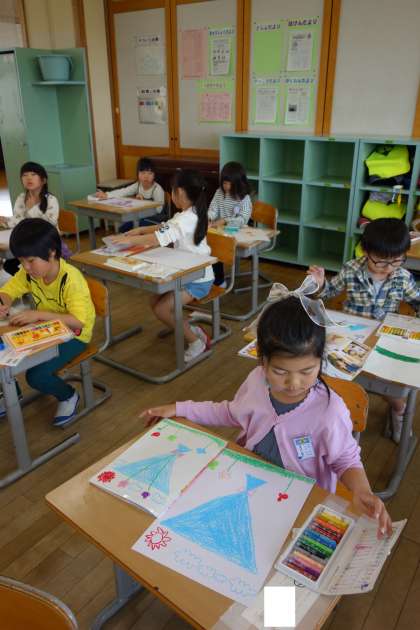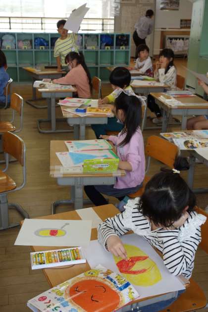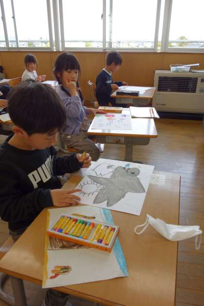 図画工作科の学習の様子です。描きたいものや好きなもの等、イメージを膨らませて絵を描きました。