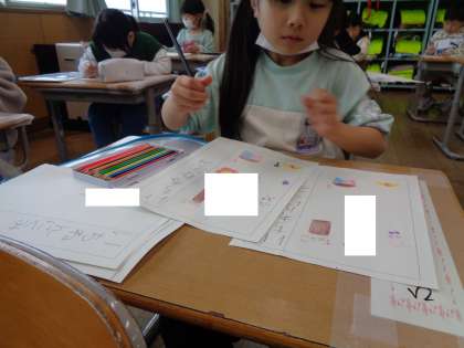 どうぞよろしくの会をするために、カードの準備をしています。名前を綺麗に書いた後には、自分の好きなものの絵を描きました。このカードを持って次の国語の時間にはいよいよどうぞよろしくの会を行います。