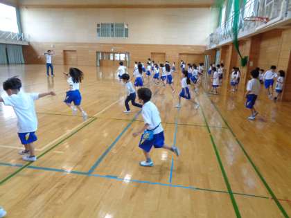 運動会で行う50m走の練習が始まりました。スタートを上手に走ることができるよう、何回も練習しました。