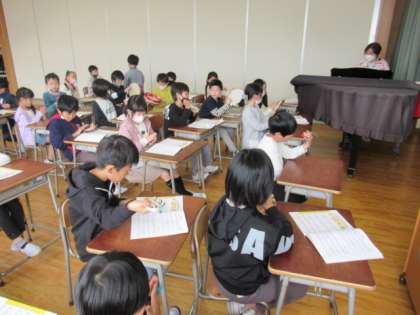 今日の音楽の時間に、校歌の練習をしました。