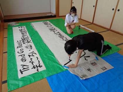 明日の児童総会、結団式に向けて準備を進めています。全校のリーダーとして気持ちを高めています。