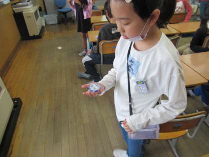 今日の社会科の学習で、方位磁針の使い方の勉強をしました。