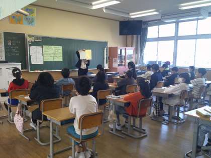 算数科「つり合いのとれた図形について考えよう」の学習に取り組みました。線対称な図形の性質を使って、どのように線対称な図形を書くとよいか考えました。保護者の皆様、ご多用の中参観いただきましてありがとうございました。