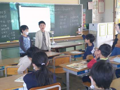 自分の住んでいる地区の「すてき」を紹介しました。友達が自然と集まってくる公園、魚やカニがいる川、きれいな景色がみられる大きな橋等、それぞれの地区のすてきなところが