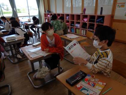 Unit1「This is me!」の学習で、自分の好きなものや自分の得意なことについて英語を用いて表現しました。友達にインタビューをする活動にも取り組みました。