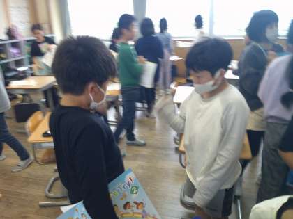 自分の好きな色を英語で相手に伝えました。