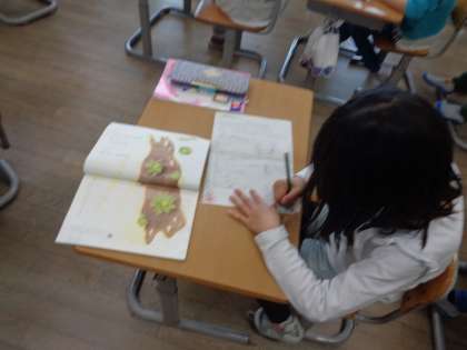 ふきのとうの学習では登場人物の気持ちになって、読み方を工夫する授業を行っています。工夫して音読することができるようになってきており、登場人物が何を考えているか、なぜその台詞をいったのかをよく考えています。