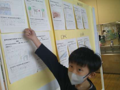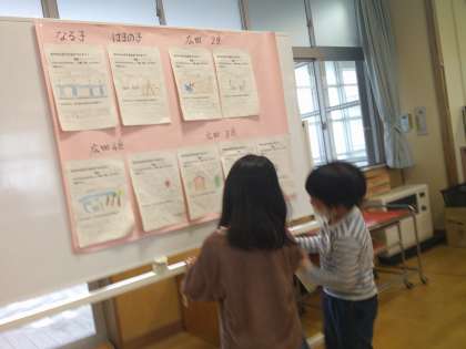 休み時間にも、友達がかいた地区紹介のカードを見て、気になる地区や行ってみたいところを考えています。