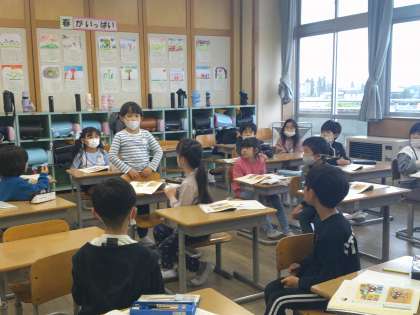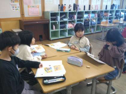 片付けが苦手なポンタくん、夢中になりすぎてしまうポンタくん。そんなポンタくんの姿から、自分の経験を通して、どんなことに気を付けたらいいか考えを出し合いました。