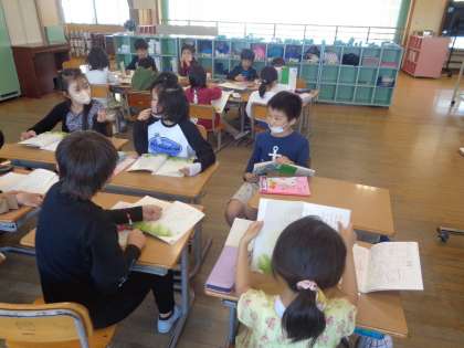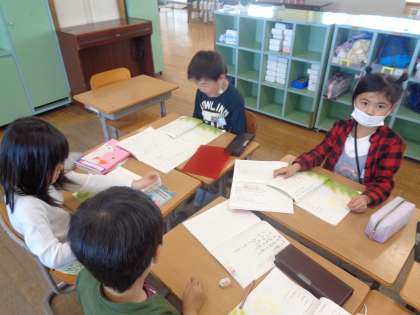 国語科「ふきのとう」の学習では、自分たちが見付けた音読の工夫をふまえて音読を行いました。自分が担当する役を決め、その役になりきって音読していました。どんどん気持ちのこもった音読になってきています。