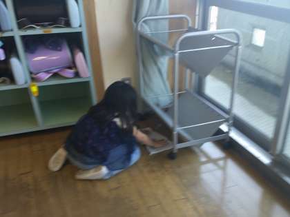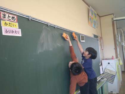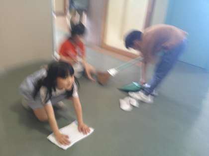 それぞれ自分の担当場所の掃除にしっかり取り組んでいます。教室のすみまで丁寧に拭いたり、広いワークはダイナミックに雑巾がけをしたりと、限られた時間のなかで頑張っています。