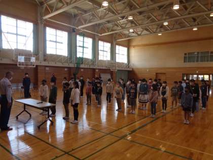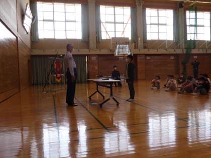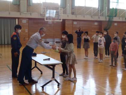 BFCバッジ授与式を行いました。一人一人が真剣な顔で式に臨みました。今後、防火について学習を進めていきましょう。