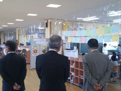 学校運営協議会委員の方々をお迎えし、第1回学校運営協議会を行いました。協議会では、学校概況説明やアクションプランについてお伝えし、質疑応答・協議を行いました。協議委員の方々からは、たくさんの貴重なご意見をいただきました。協議会の後は、6限の子供たちの様子も参観されました。