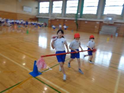 初めての競技である、台風の目を4年生と合同で練習しました。