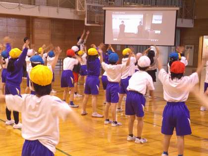運動会で披露するダンスの練習を始めました。Melaの曲に合わせて踊ります。初日ながら、曲に合わせてなかなか上手に踊っています。