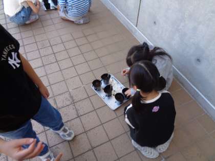 理科の授業で、ホウセンカ、ピーマン、オクラ、ひまわりの4種類の種を植えました。