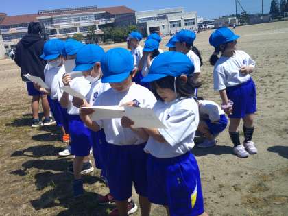 気持ちのいい天気のもと、第1回目の全体練習を行いました。その後は、6年生に歌や振り付けを教えてもらい、団ごとに応援練習をしました。練習が終わり、教室に戻ってきてからも、互いに団の歌を歌い合っている2年生でした。