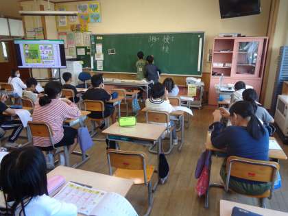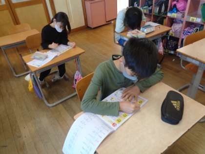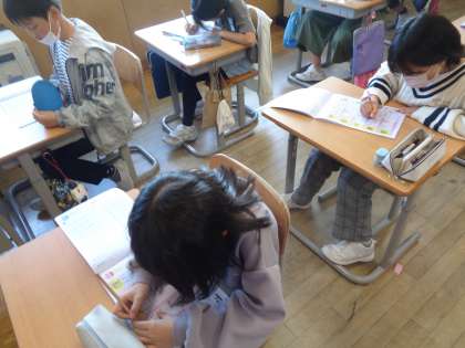 漢字練習に励んでいる様子です。友達の指示を聞きながら、集中して取り組みました。