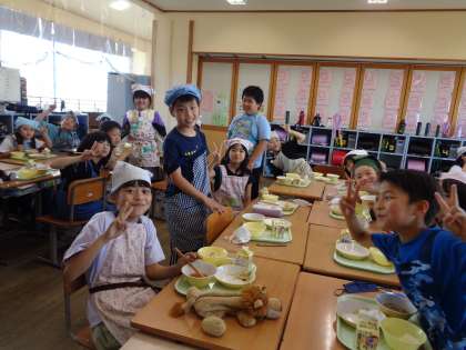 給食委員会の企画で、今月が誕生日の宮野っ子が給食中の校内放送で紹介されました。放送でハッピーバースデーの曲が流れたり起立を促されたりするのに合わせて、祝福の歌や拍手で盛り上がりました。